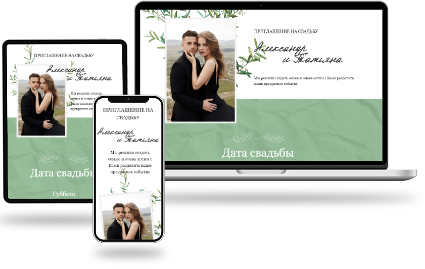 + Страница история знакомства + Страница списка гостей и рассадки + Страница меню и напитков